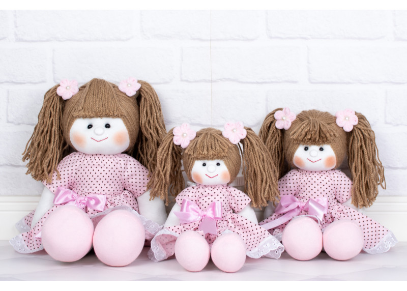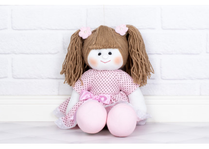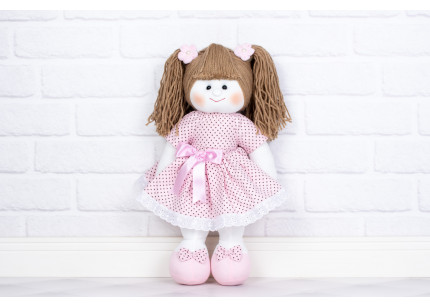 Bonecas Juliana Vestido com Lese poá rosa com marrom miúdo