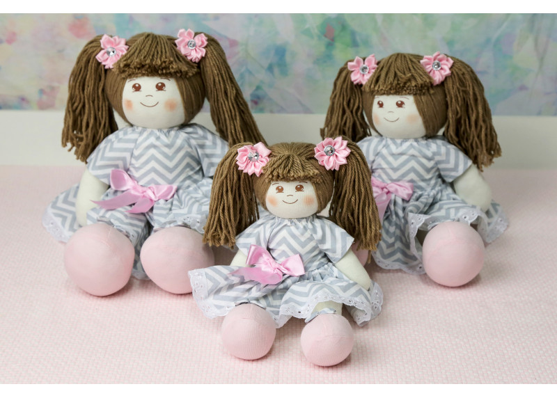 Bonecas Julia Vestido com Lese chevron cinza com rosa