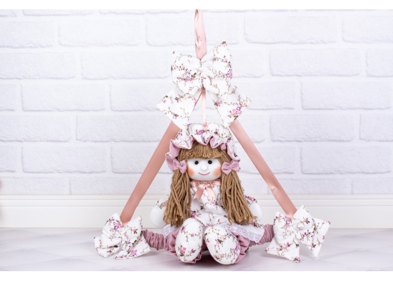 Enfeite de Porta Boneca Luiza 18 cm Vestido com Lese floral ramo escuro com rosê