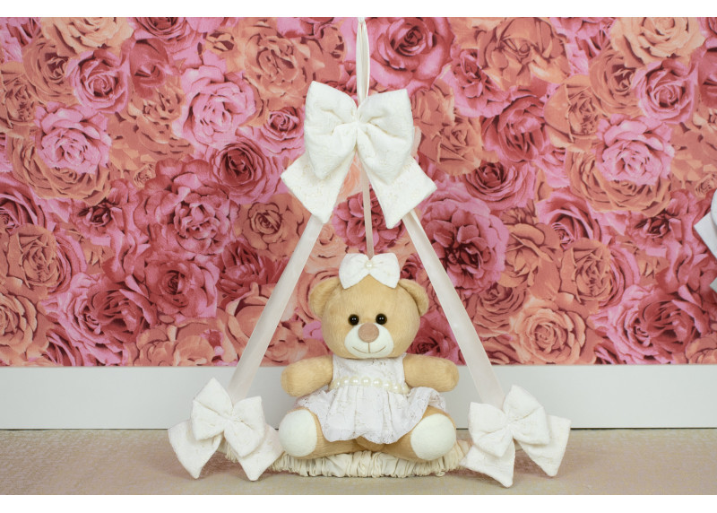 Enfeite de Porta Urso Tedde 0,18 Vestido de Renda palha