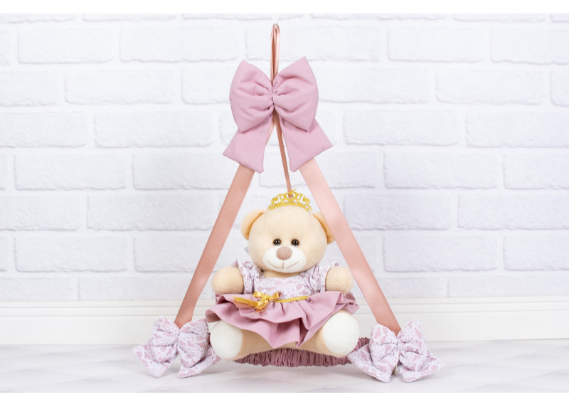 Enfeite de Porta Urso Tedde 18 cm Princesa Petit com Renda rosê - Pelúcia Doce de Leite