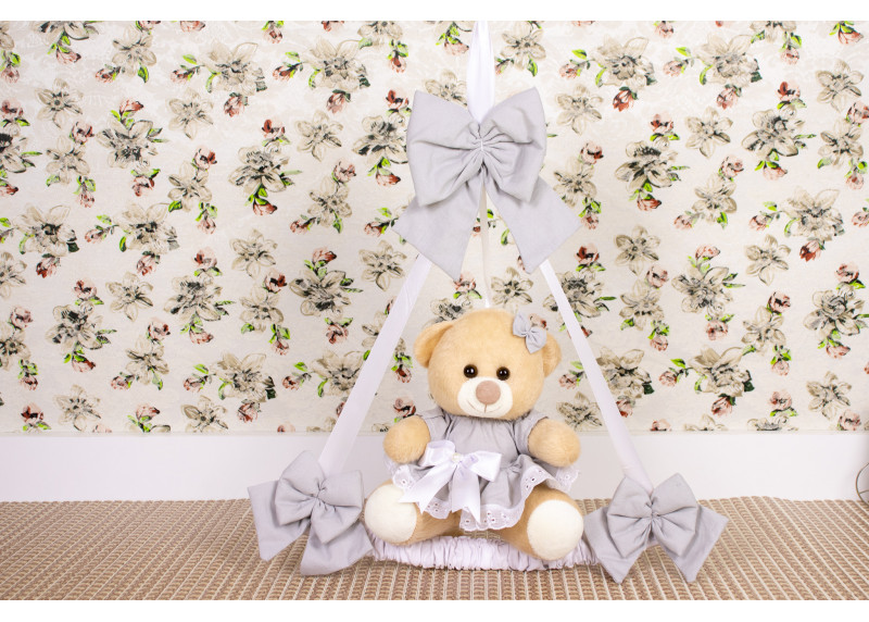 Enfeite de Porta Urso Tedde 0,18 Vestido com Lese cinza liso