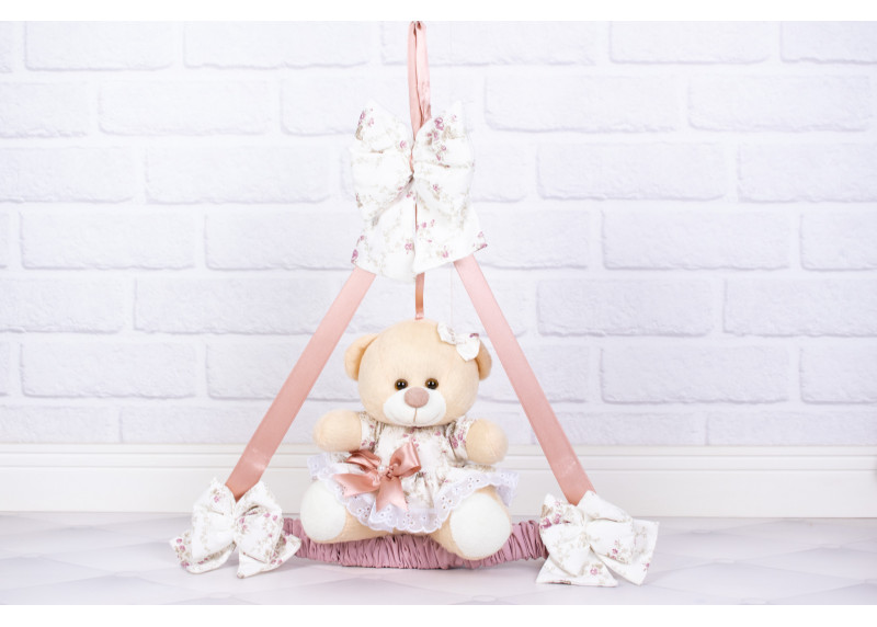 Enfeite de Porta Urso Tedde 18 cm Vestido com Lese floral novíssimo rosê - Pelúcia Doce de Leite
