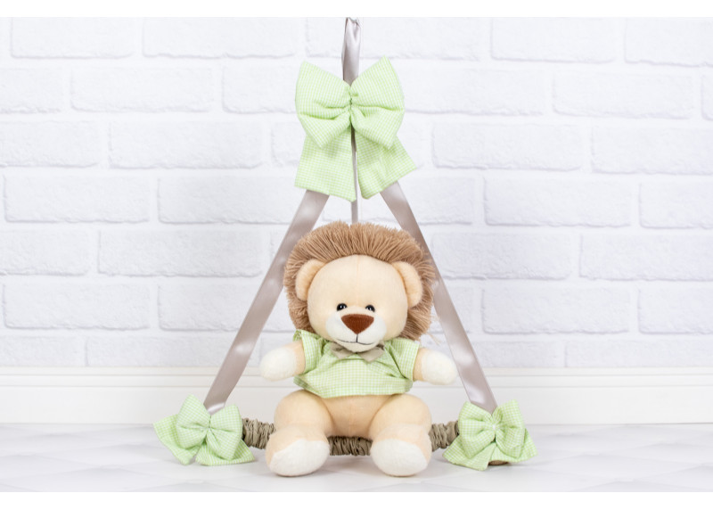 Enfeite de Porta Leão Provence 18 cm Camiseta e Gravata xadrez de verde