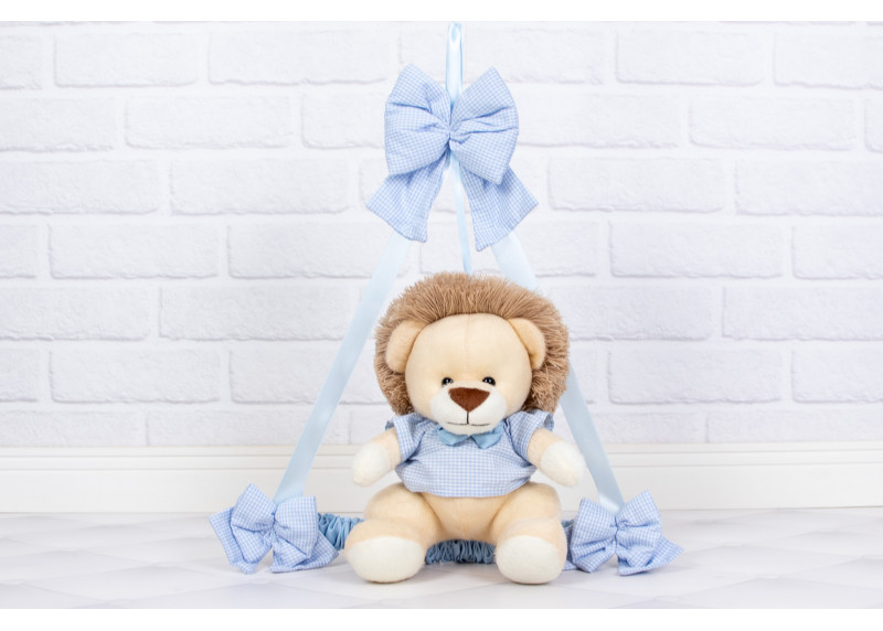 Enfeite de Porta Leão Provence 18 cm Camiseta e Gravata xadrez de azul
