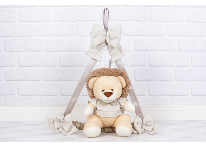 Enfeite de Porta Leão Provence 18 cm Camiseta e Gravata xadrez de bege