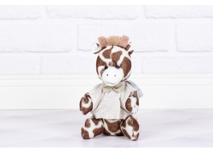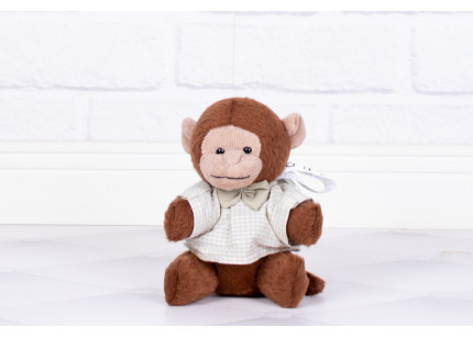 Safári Mini Leão, Elefante, Macaco e Girafa 10 cm Camiseta e Gravata xadrez de bege