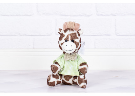 Safári Mini Leão, Elefante, Macaco e Girafa 10 cm Camiseta e Gravata xadrez de verde