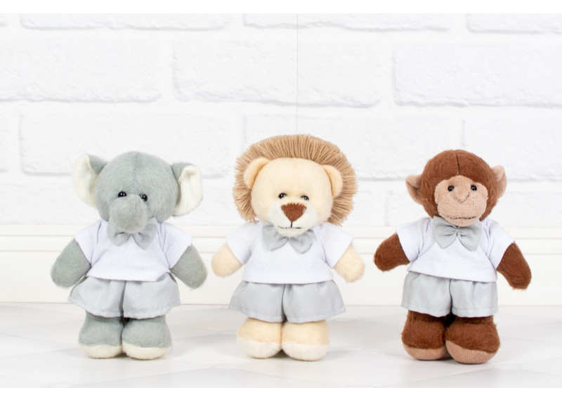 Safári Family Leão, Elefante e Macaco 12 cm Shorts e Camisa cinza liso