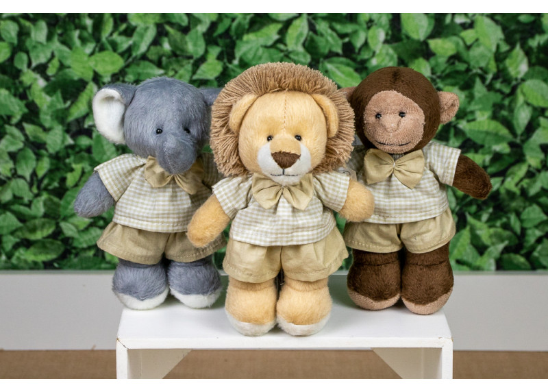 Safári Family Leão, Elefante e Macaco 0,12 cm Shorts e Camisa xadrez de bege
