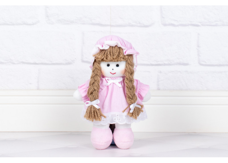 Boneca Laura 12 cm Vestido com Lese rosa liso
