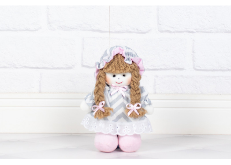 Boneca Laura 12 cm Vestido com Lese chevron cinza com rosa