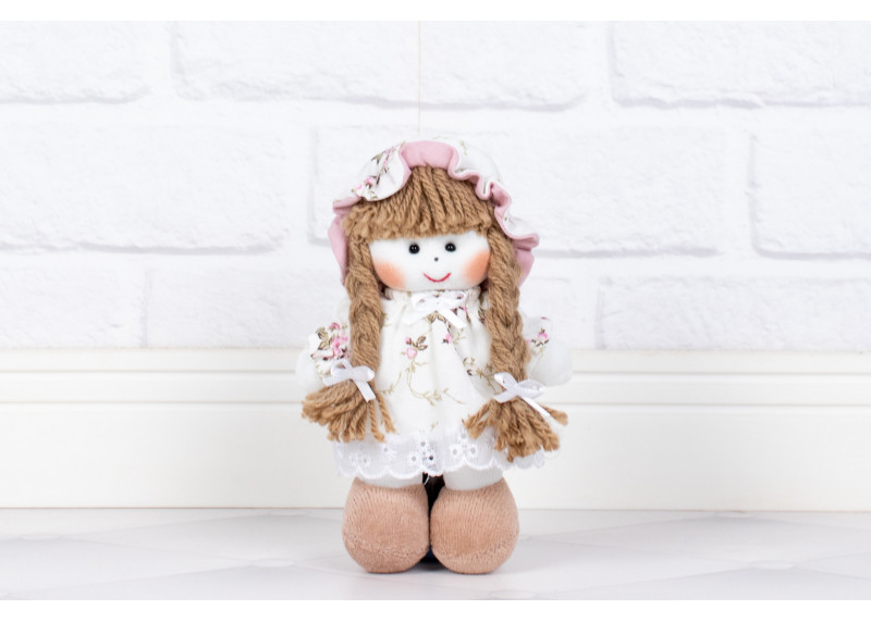 Boneca Laura 12 cm Vestido com Lese floral ramo escuro com rosê