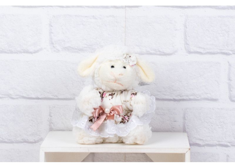 Ovelha Mini 10 cm Vestido com Lese floral ramo escuro com rosê