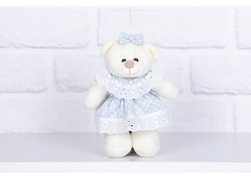 Urso Family 12 cm Vestido Baby poá cinza - Pelúcia Palha