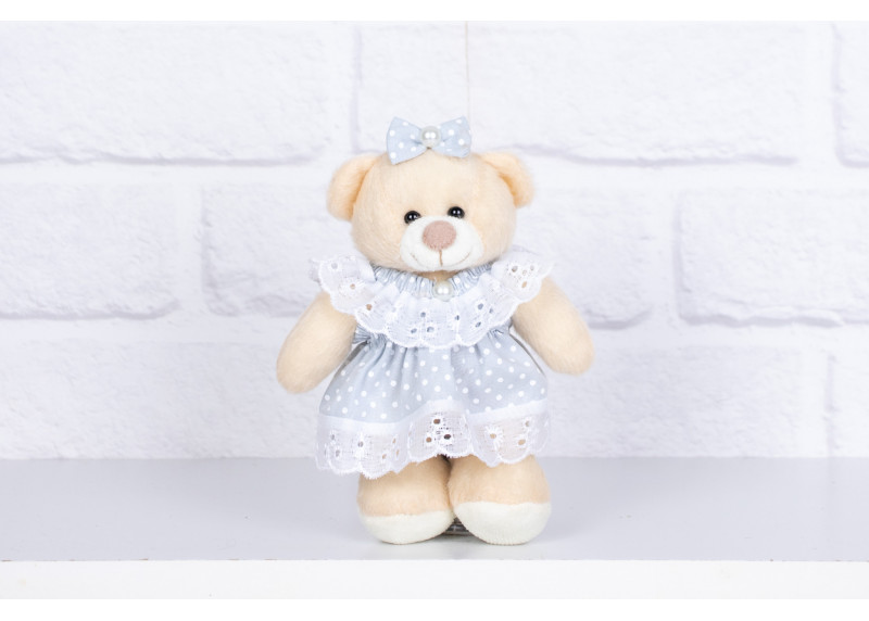 Urso Family 12 cm Vestido Baby poá cinza - Pelúcia Doce de Leite