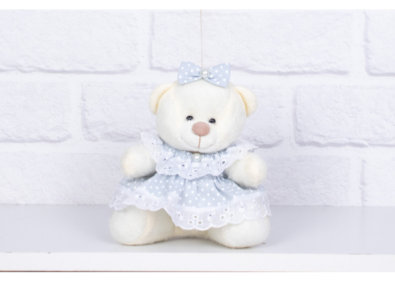 Urso Tedde 12 cm Vestido Baby poá cinza - Pelúcia Palha