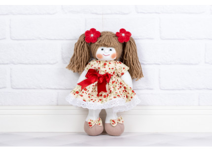 Boneca Juliana 12 cm Vestido com Lese floral vermelho