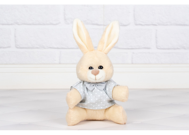 Coelho Mini 12 cm Camiseta e Gravata poá cinza