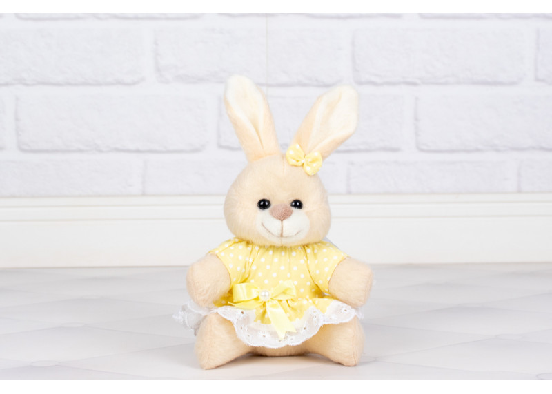 Coelho Mini 12 cm Vestido com Lese poá amarelo