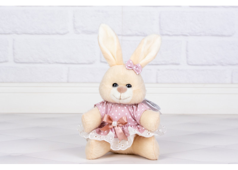 Coelho Mini 12 cm Vestido com Lese poá rosê com palha
