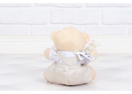 Urso Tedde 12 cm Docinho Suspensório xadrez de bege - Pelúcia Doce de Leite -
