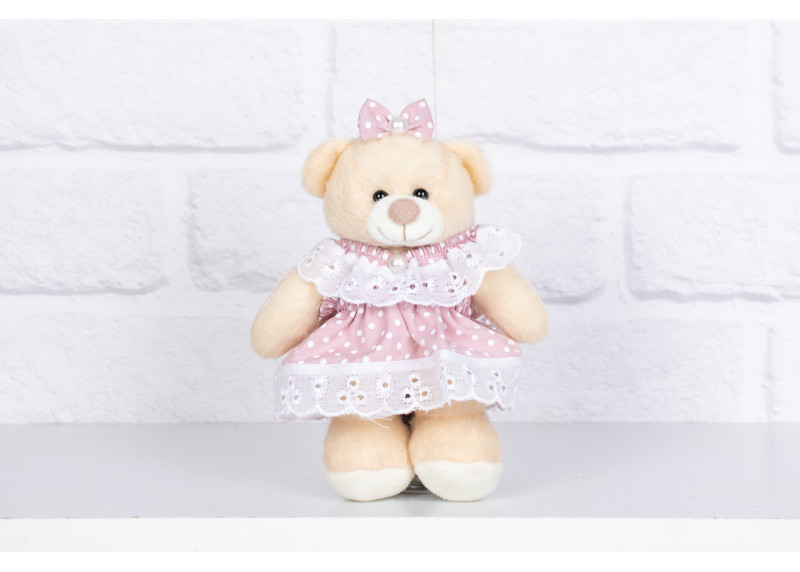 Urso Family 12 cm Vestido Baby poá rosê - Pelúcia Doce de Leite