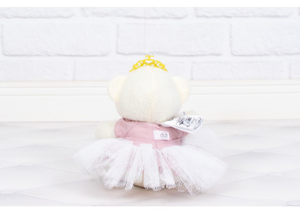 Urso Tedde 12 cm Bailarina com coroa Dourada rosê liso - Pelúcia Palha