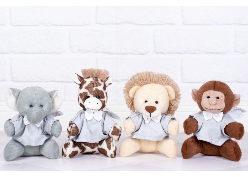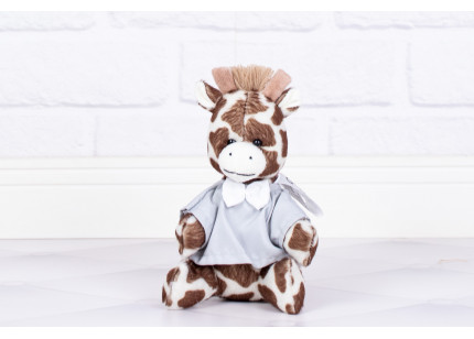 Safári Mini Leão, Elefante, Macaco e Girafa 10 cm Camiseta e Gravata cinza liso