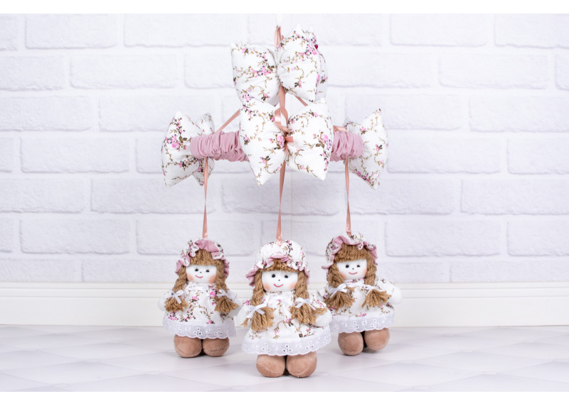 Móbile Boneca Vestido com lese floral ramo escuro com rosê