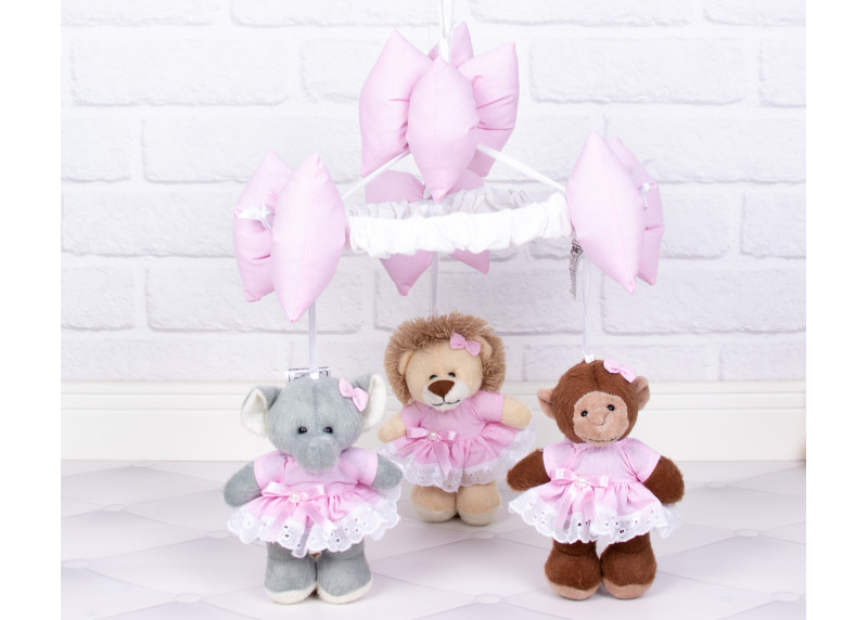 Móbile Safári Misto Leão, Macaco e Elefante Vestido com Lese rosa liso
