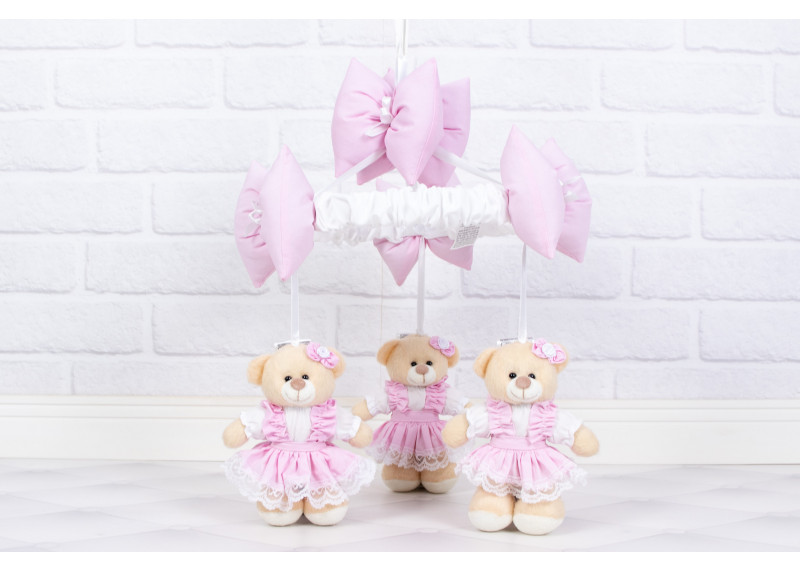 Móbile Ursa Camponesa rosa liso - Pelúcia Doce de Leite