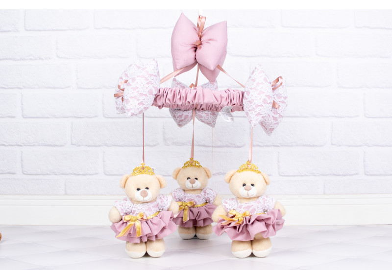 Móbile Ursa Princesa Petit com Renda rosê - Pelúcia Doce de Leite