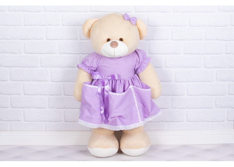 Porta Fraldas Ursa Vestido com Lese poá lilás - Pelúcia Doce de Leite