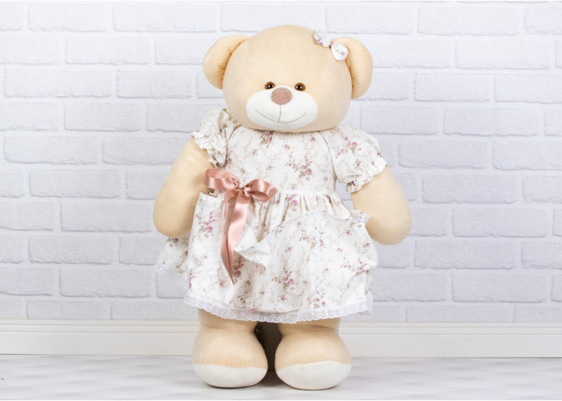 Porta Fraldas Ursa Vestido com Lese floral novíssimo rosê - Pelúcia doce de Leite