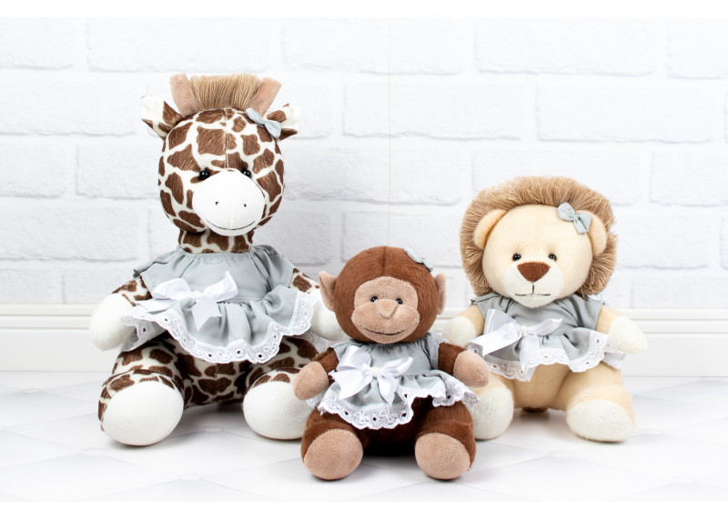 Trio Safári Provence Misto Girafa 22 cm, Leão 18 cm e Macaco 15 cm - Vestido com lese cinza liso