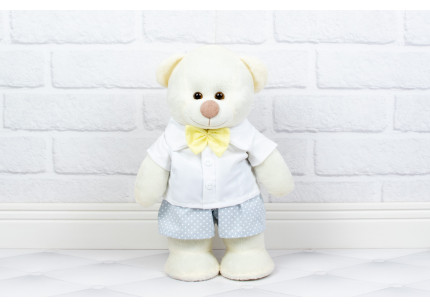 Kit Ursos Amore Com: 2 Ursos de 30 cm e 2 Ursos de 20 cm Chá Revelação Cinza e Amarelo - Pelúcia Palha
