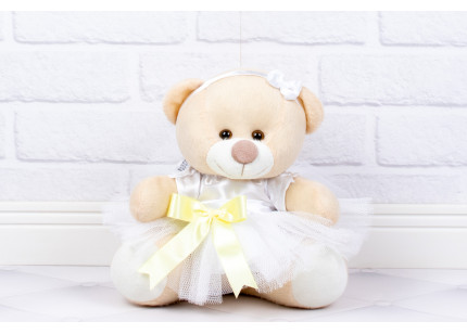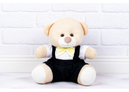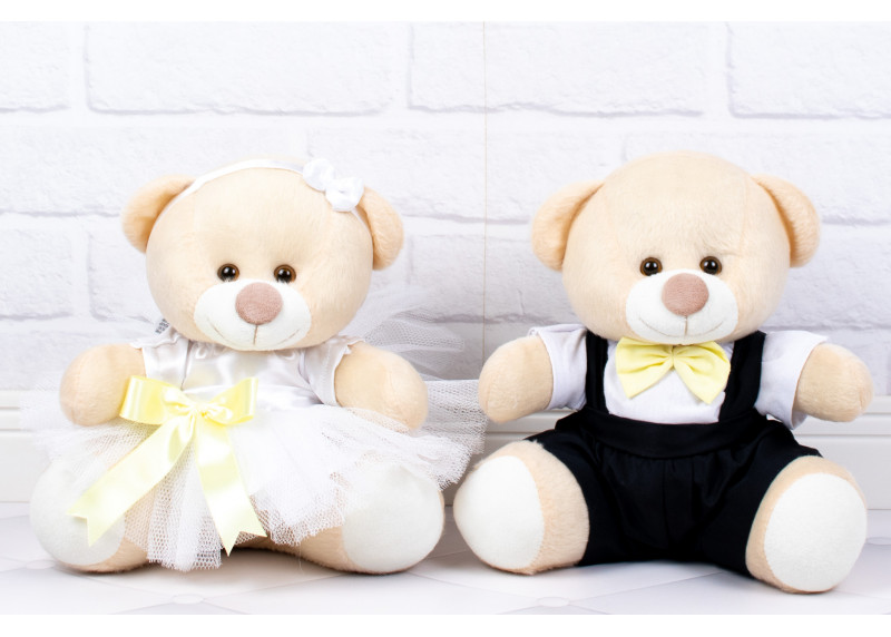 Casal Ursos Tedde Pajem Preto, Daminha Branca, detalhes amarelo