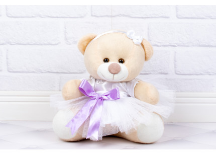 Casal Ursos Tedde Pajem Preto, Daminha Branca, detalhes lilás