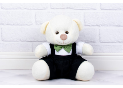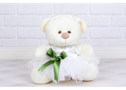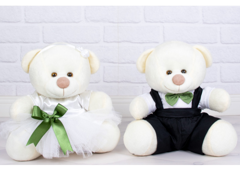 Casal Ursos Tedde Pajem Preto, Daminha Branca, detalhes verde - Pelúcia Palha