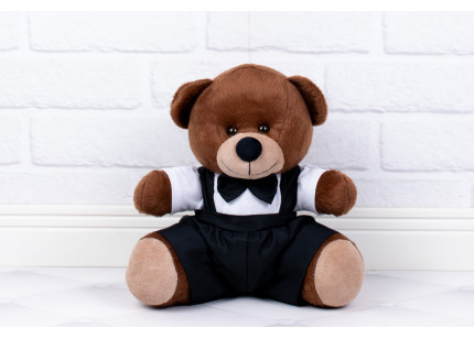 Casal Ursos Tedde Pajem Preto, Daminha Branca, padrão - Pelúcia Marrom