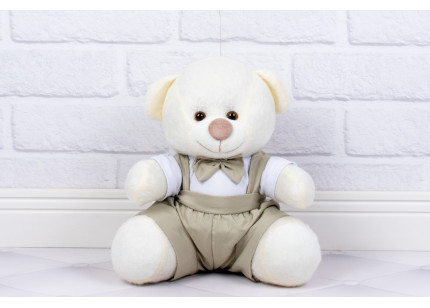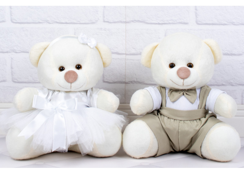 Casal Ursos Tedde Pajem Cáqui, Daminha Branca, padrão - Pelúcia Palha