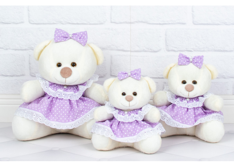 Ursos Tedde Vestido Baby poá lilás - Pelúcia Palha