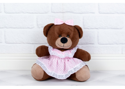 Ursos Tedde Vestido Baby poá rosa com branco - Pelúcia Marrom