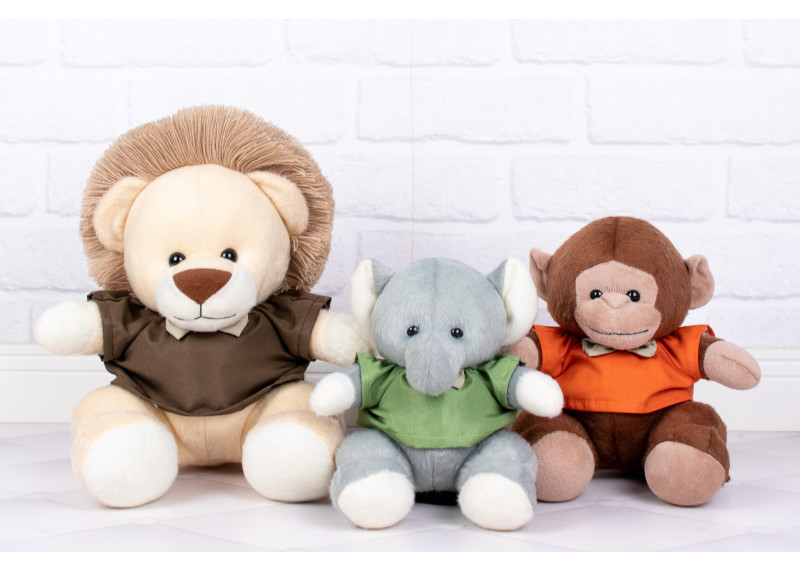 Medidas: Elefante 15 cm, Macaco 18 cm e Leão 22 cm
