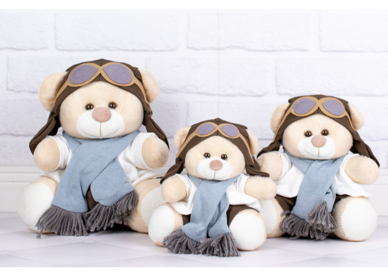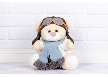Ursos Tedde Aviador clássico cinza - Pelúcia Doce de Leite