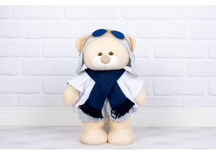 Ursos Amore Aviador clássico branco, cinza e marinho - Pelúcia Doce de Leite