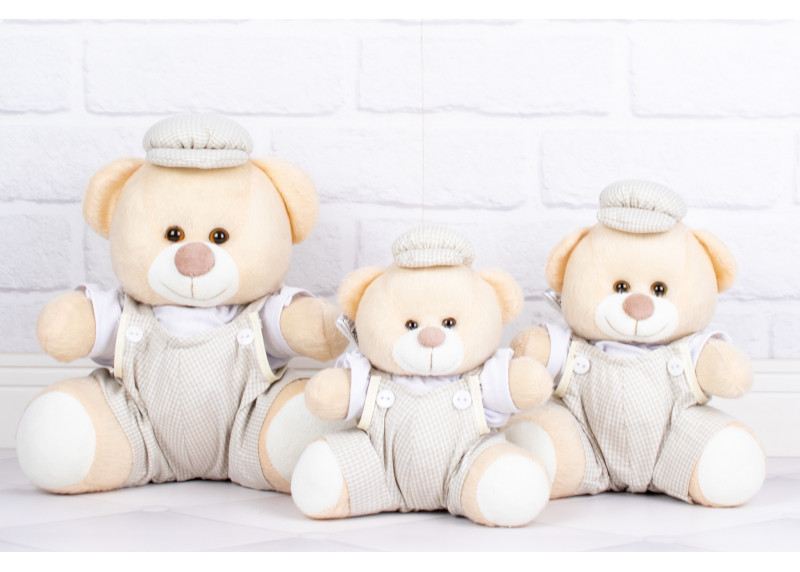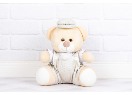 Ursos Tedde Macacão xadrez de bege - Pelúcia Doce de Leite