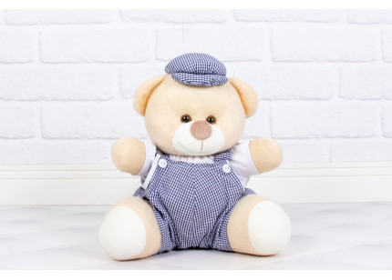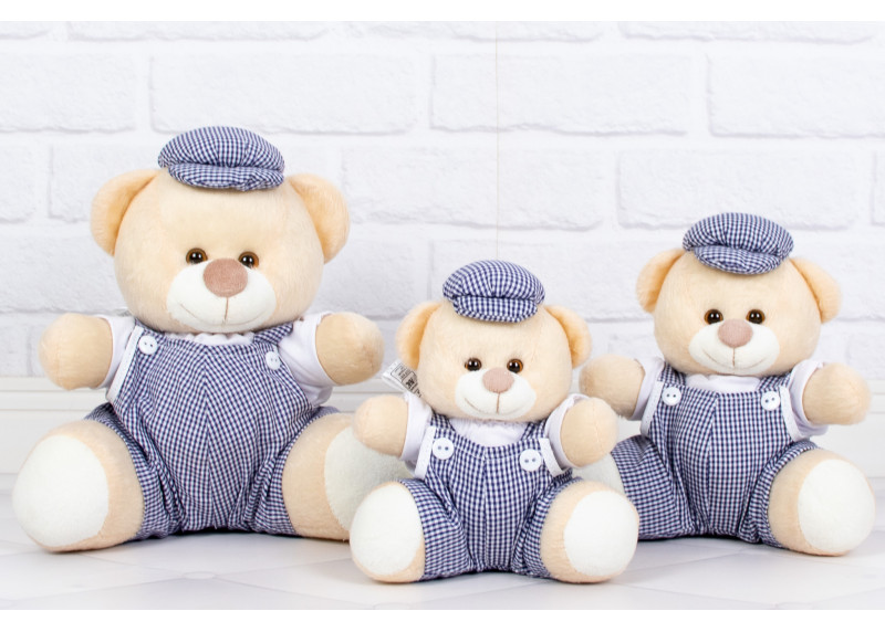 Ursos Tedde Macacão xadrez de marinho - Pelúcia Doce de Leite