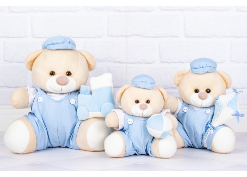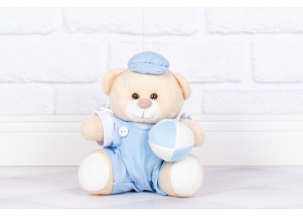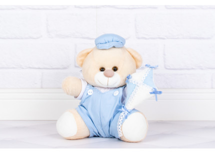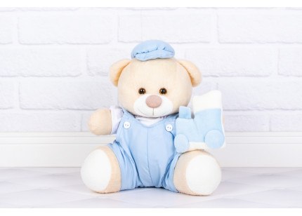 Ursos Tedde Macacão com Brinquedo azul claro liso - Pelúcia Doce de Leite